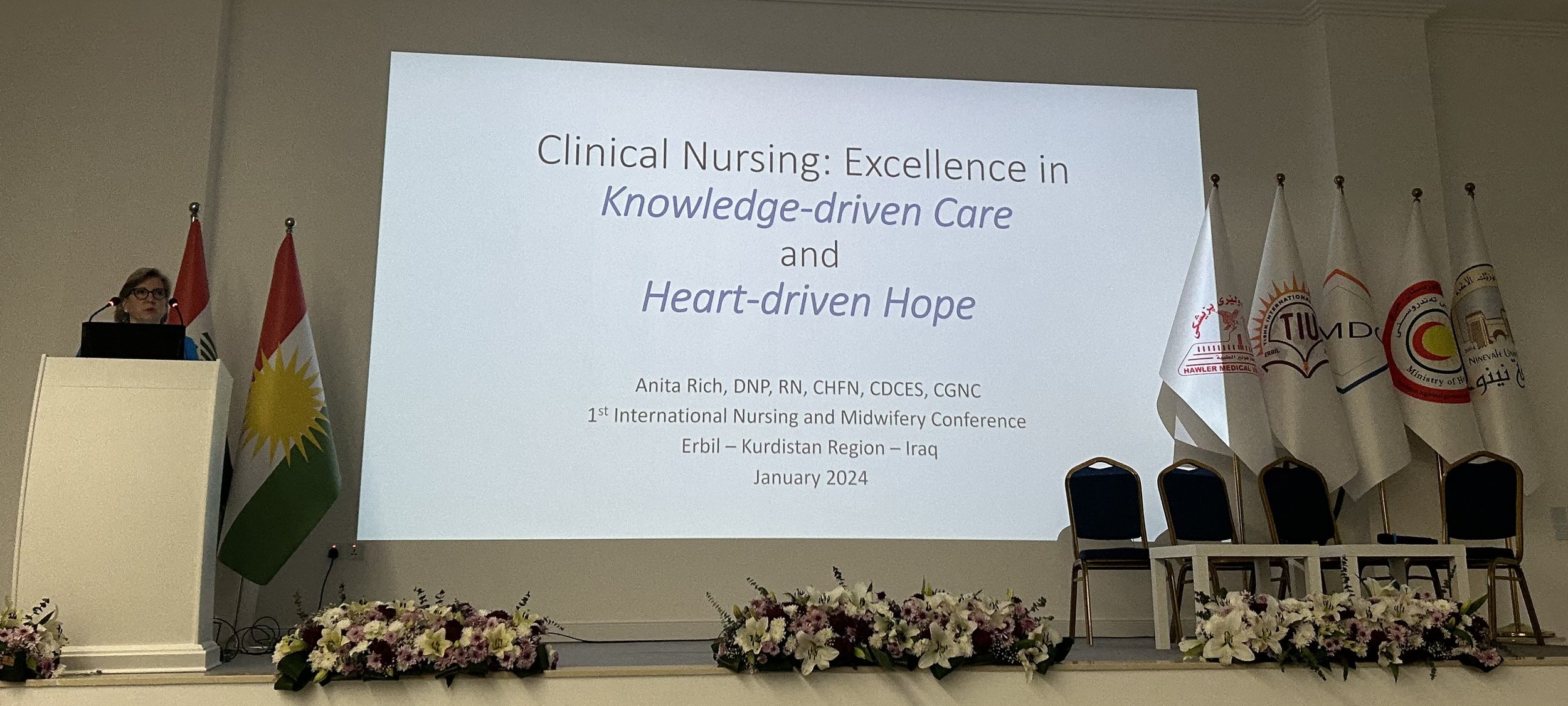 “The conference was so wonderful. It is difficult to describe. We heard nurses and midwives sharing presentations from Iran, Iraq (Mosul, Baghdad, and Erbil) and Lebanon; from Switzerland and from Spain and from the US. The audience was made up of nursing students and nursing instructors and professors, and even deans of colleges.